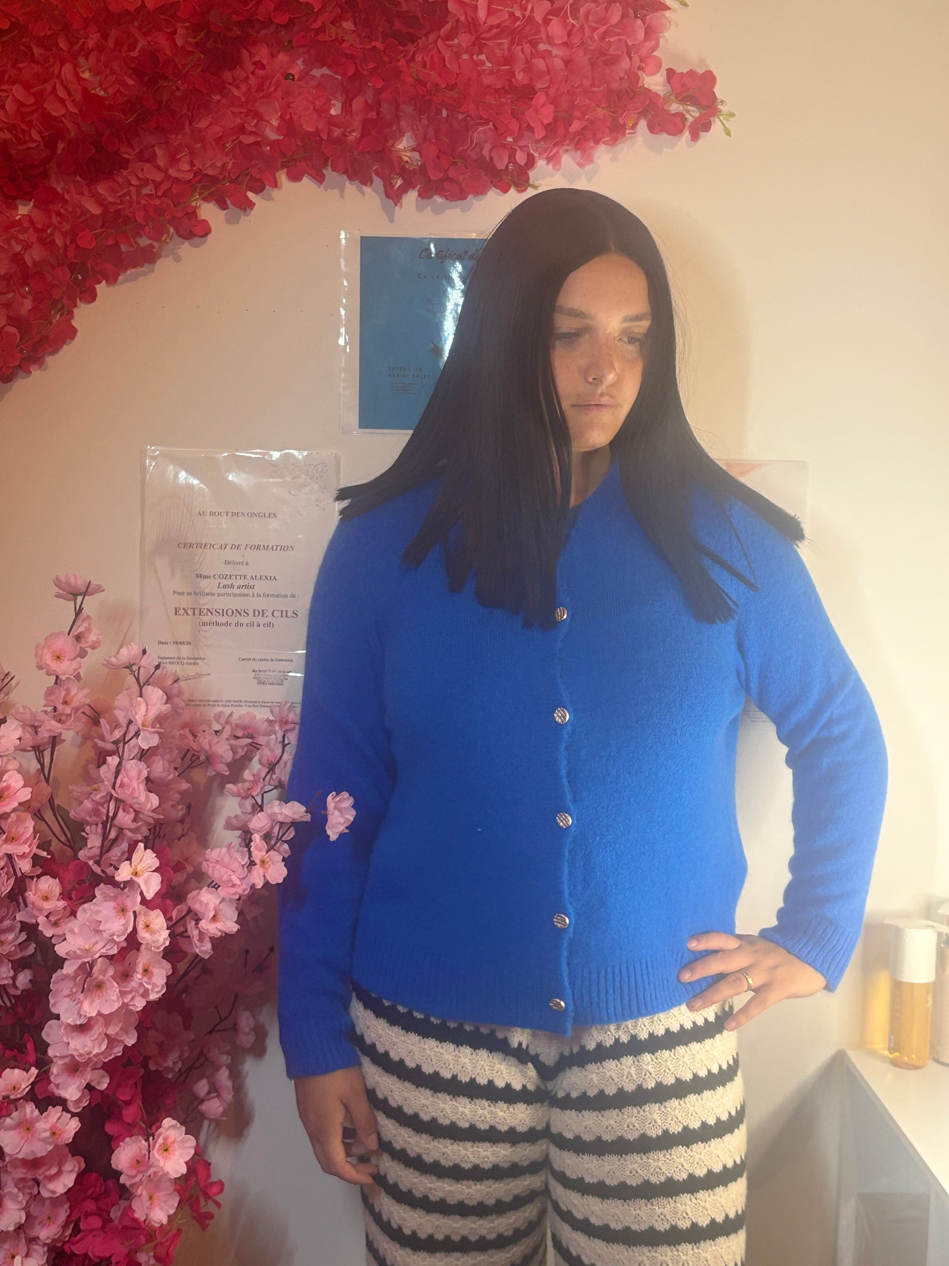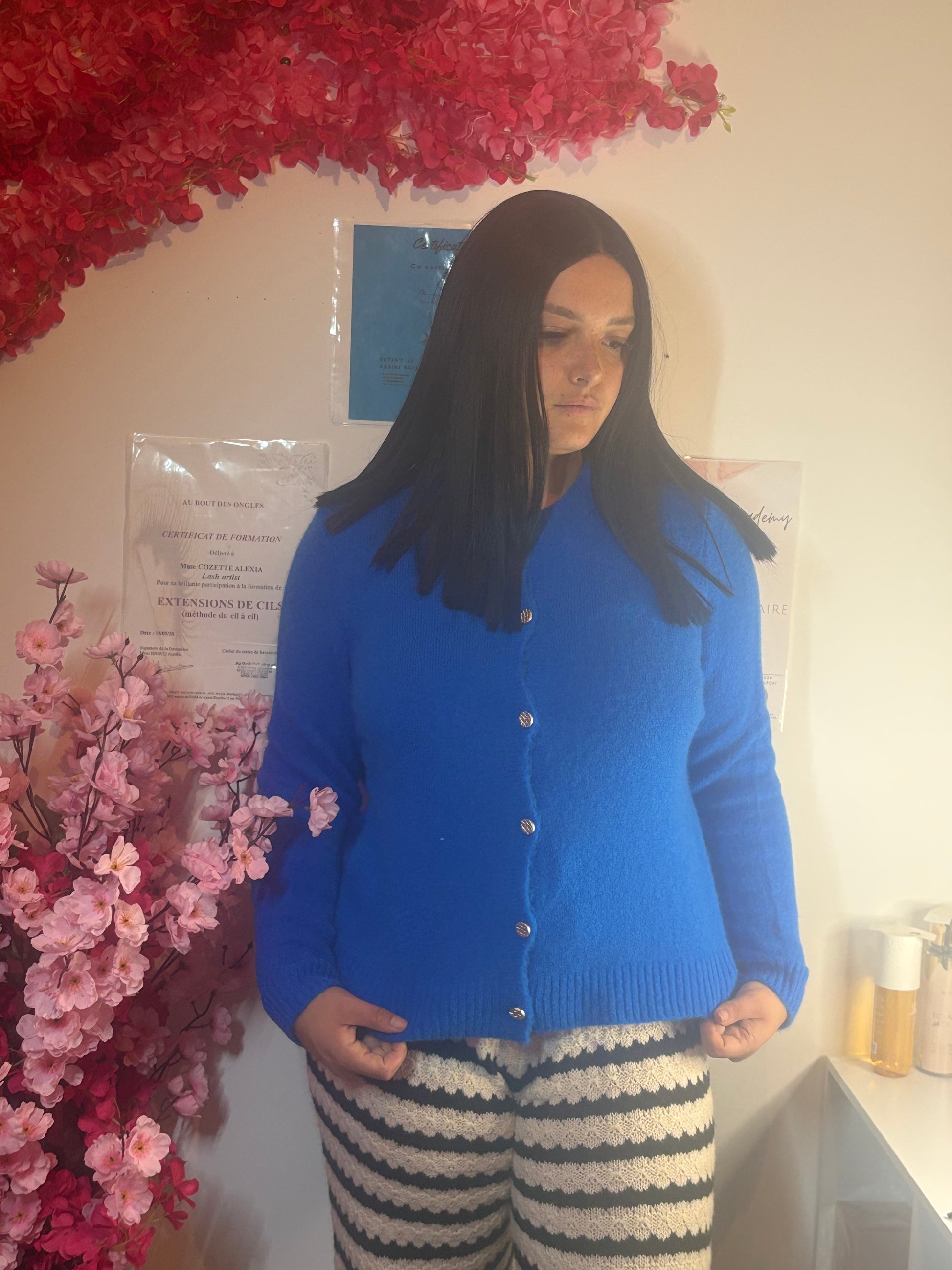 Chic et élégant, ce pull bleu roi est rehaussé de jolis boutons qui apportent une touche moderne et raffinée. Sa coupe féminine et sa maille douce en font une pièce confortable et tendance, facile à porter aussi bien au quotidien qu’en soirée.